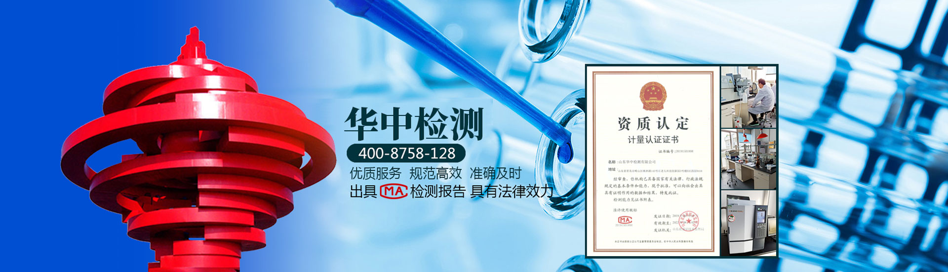 華中檢測是國家授權專業從事環境監測的第三方獨立檢測機構,通過山東省質量 技術監督局CMA計量認證,可出具有法律效力的CMA檢驗報告。公司為獨立法人單位,能夠獨立承擔法律責任,切實履行本公司“公正性聲明”,確保檢 測結果的公正性、科學性和準確性。